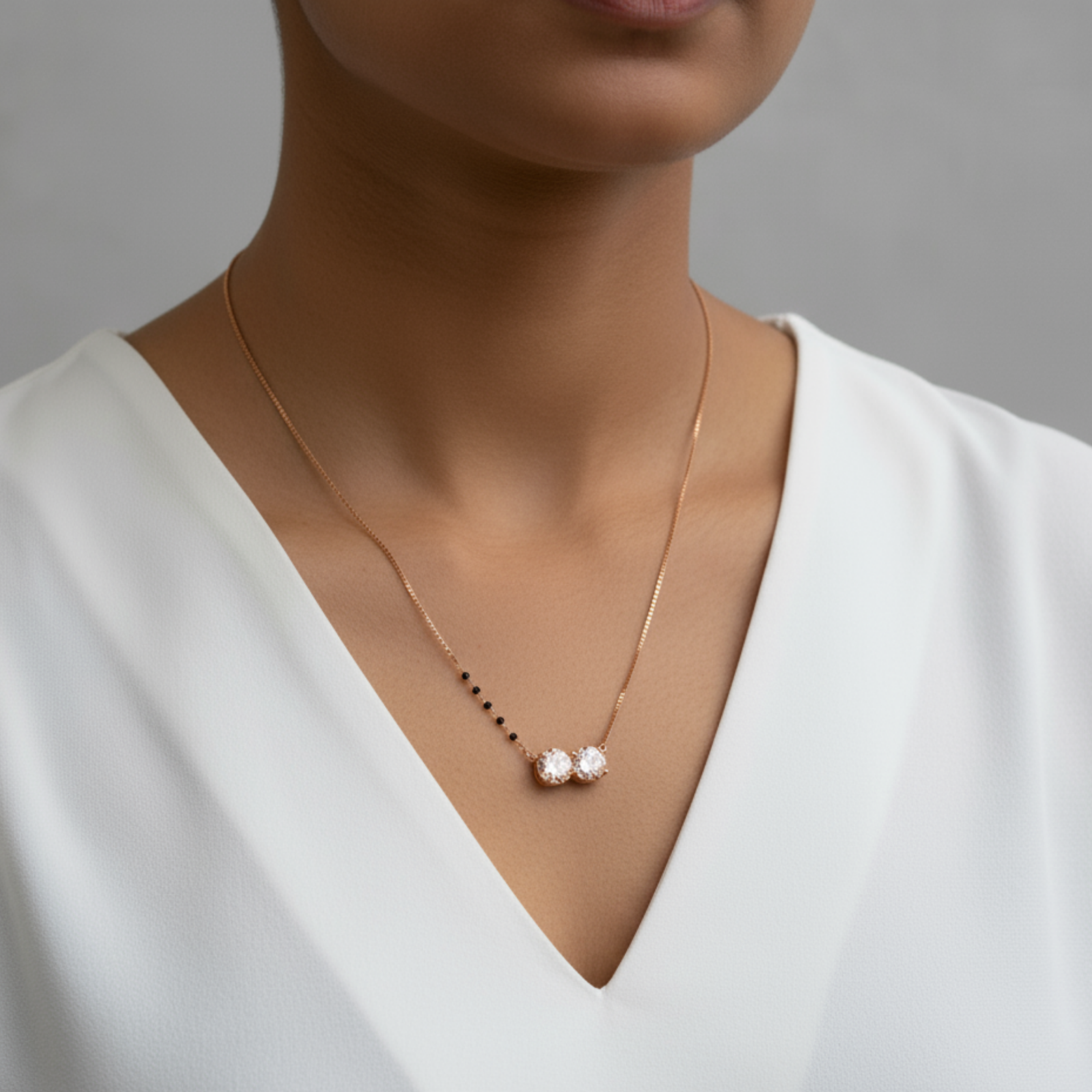 This stunning Rose Gold Plated Mangalsutra perfectly blends traditional meaning with modern style.