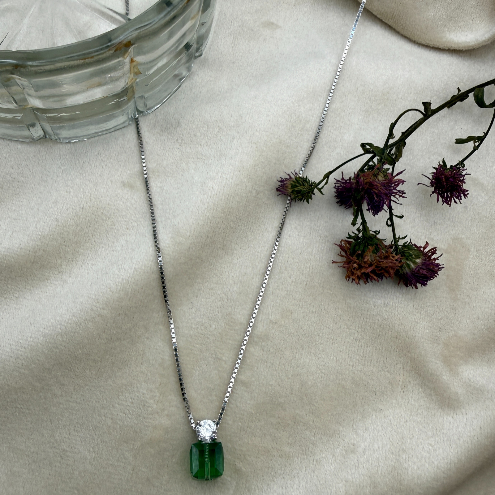 Green Crystal Necklace- Made with Fine 925 Sterling Silver