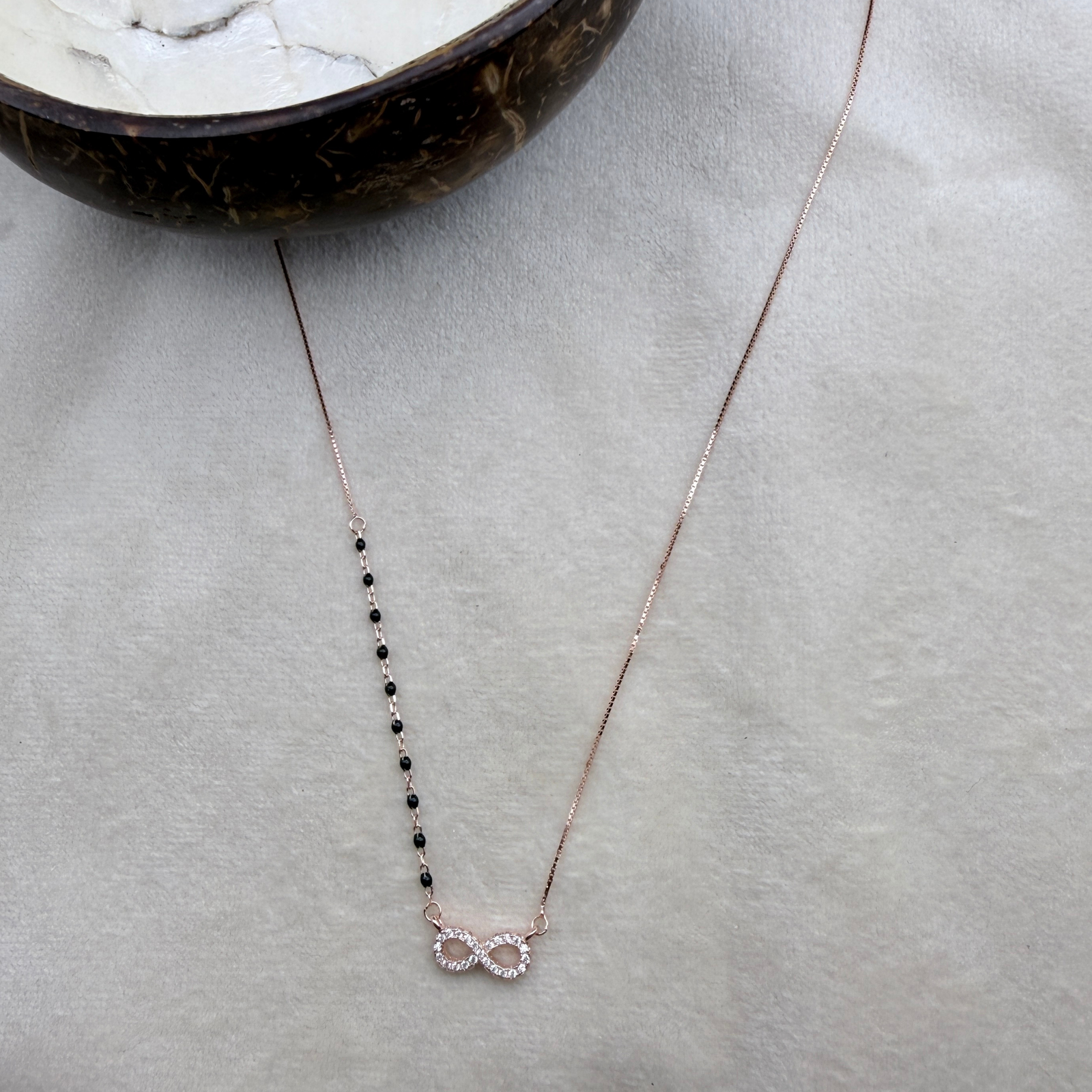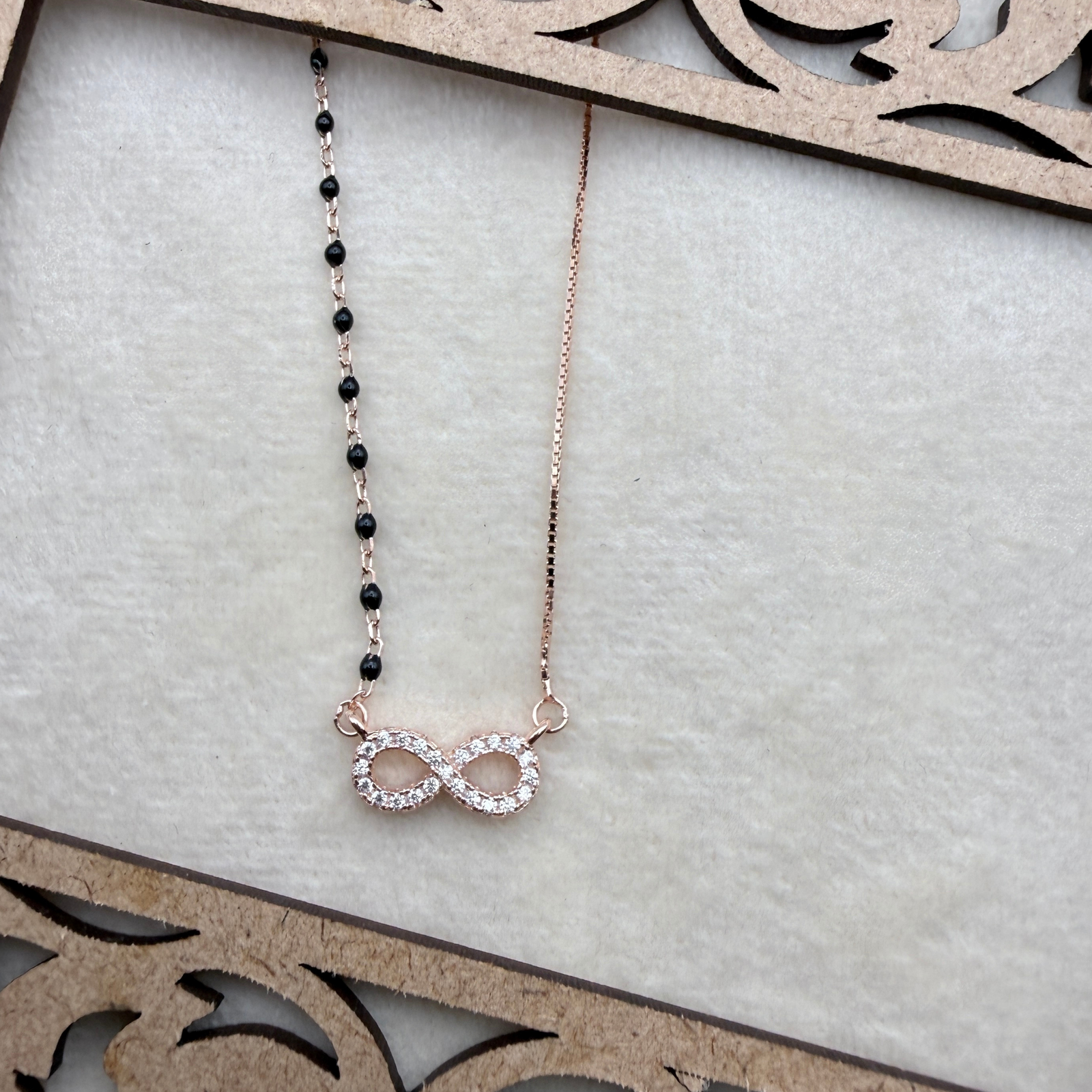 Symbolize eternal commitment and style with this elegant Rose Gold Plated Infinity Mangalsutra.