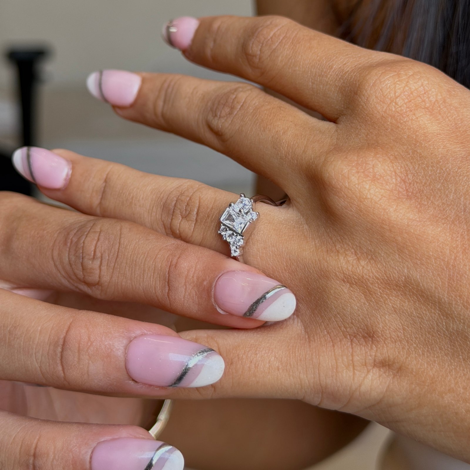 to five sparkling square stones.