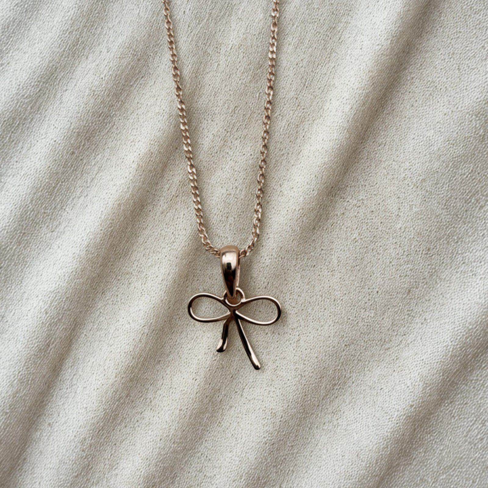 Add a touch of sweet, feminine charm to your collection with this dainty Rose Gold Bow Pendant.