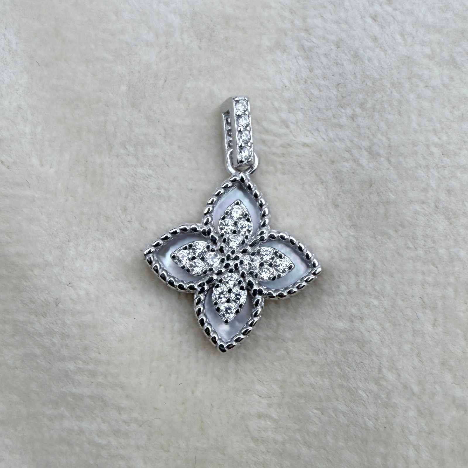 Embrace luxurious charm with this captivating Mother-of-Pearl Pavé Clover Rose Gold.