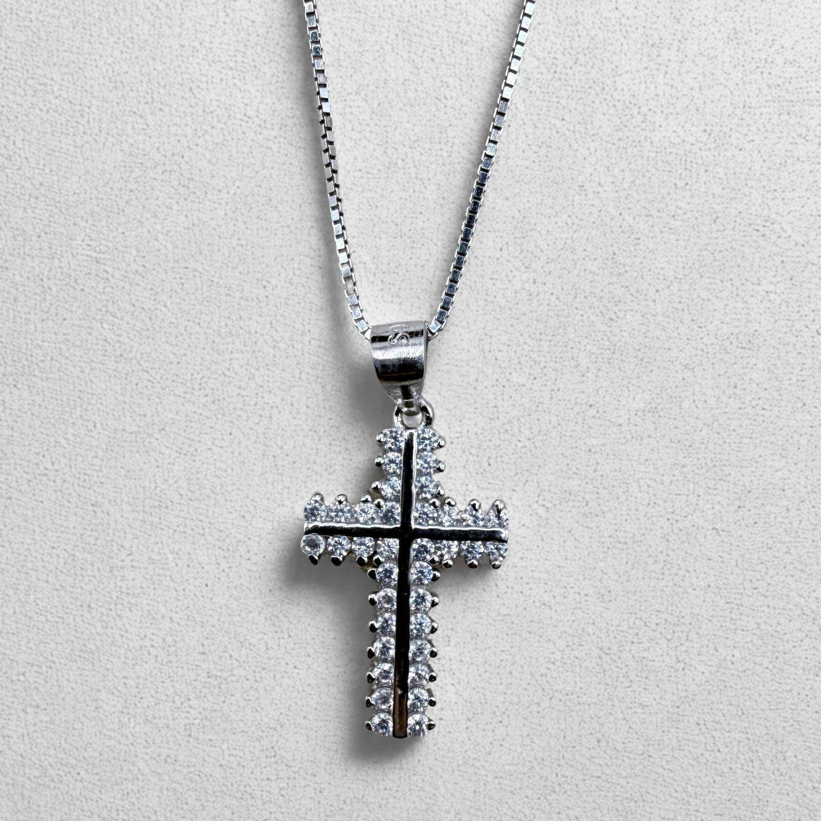 Dainty Diamond Cross 925 Sterling Silver Pendant + Chain