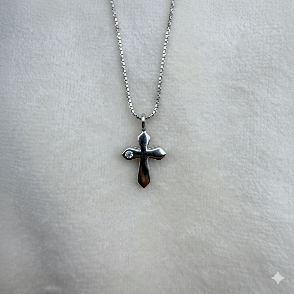Dainty Diamond Cross 925 Sterling Silver Pendant + Chain