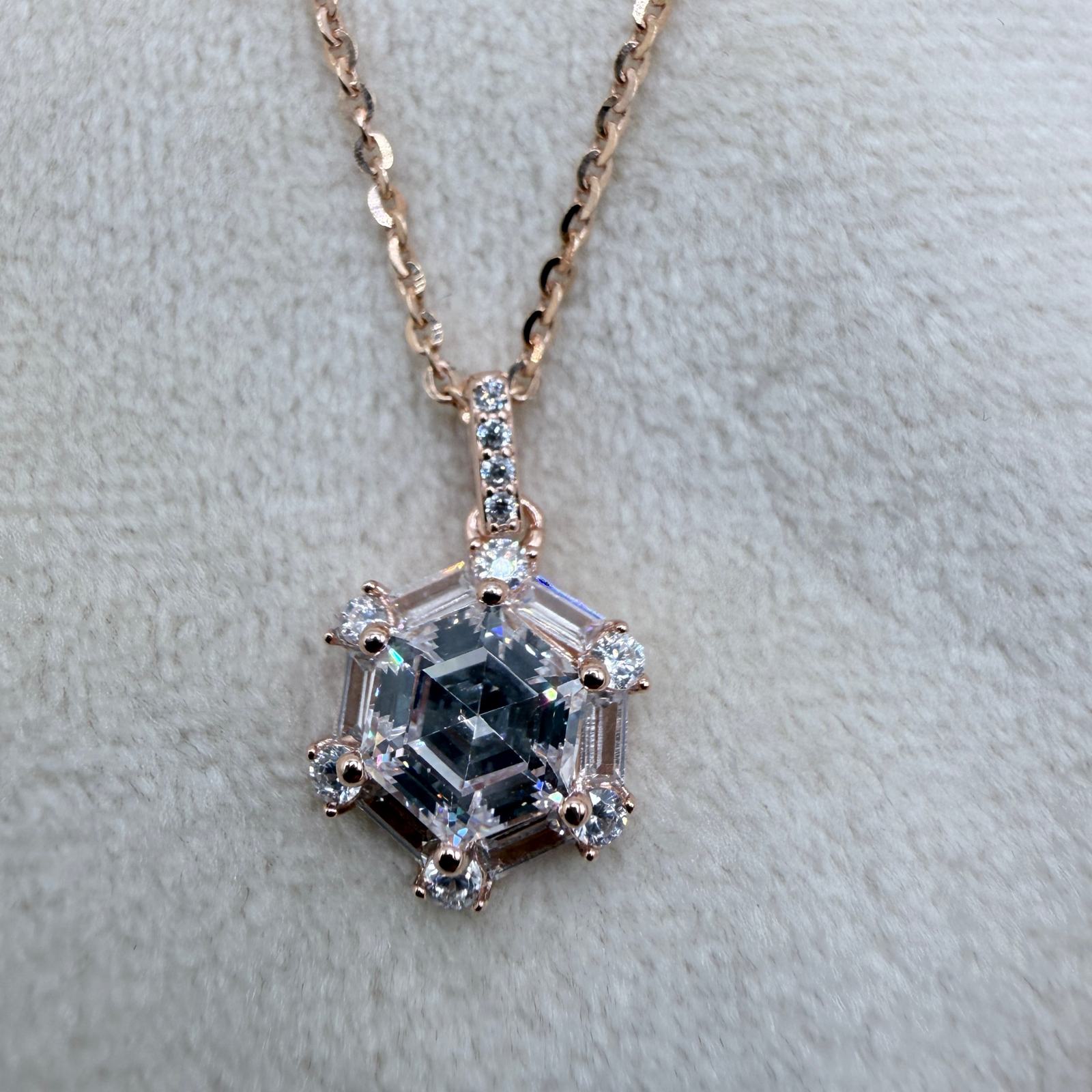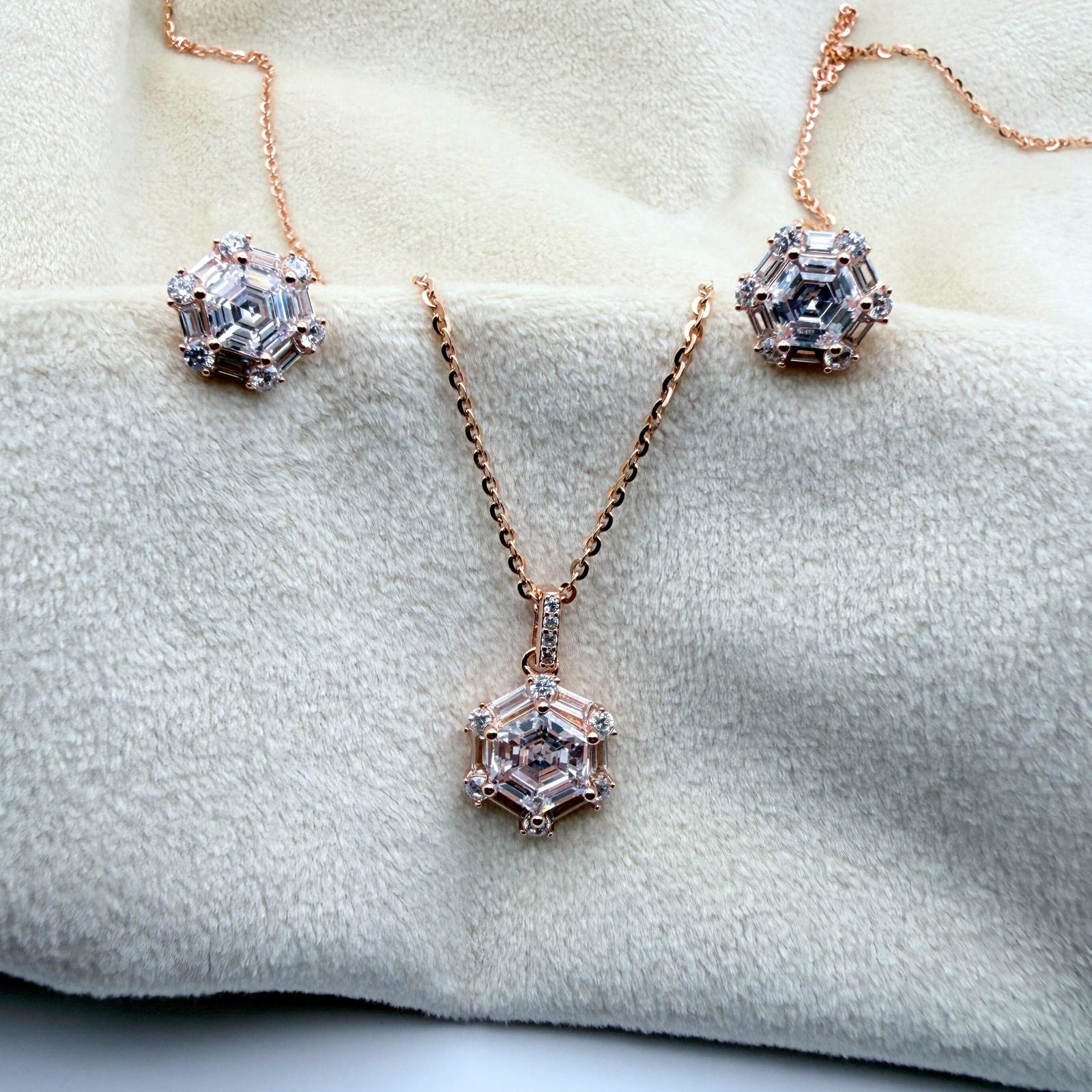 Capture the light with the breathtaking Rose Gold Hexagonal Dazzle Pendant Set.