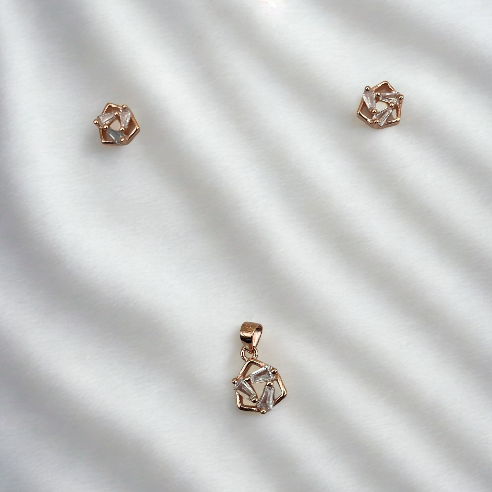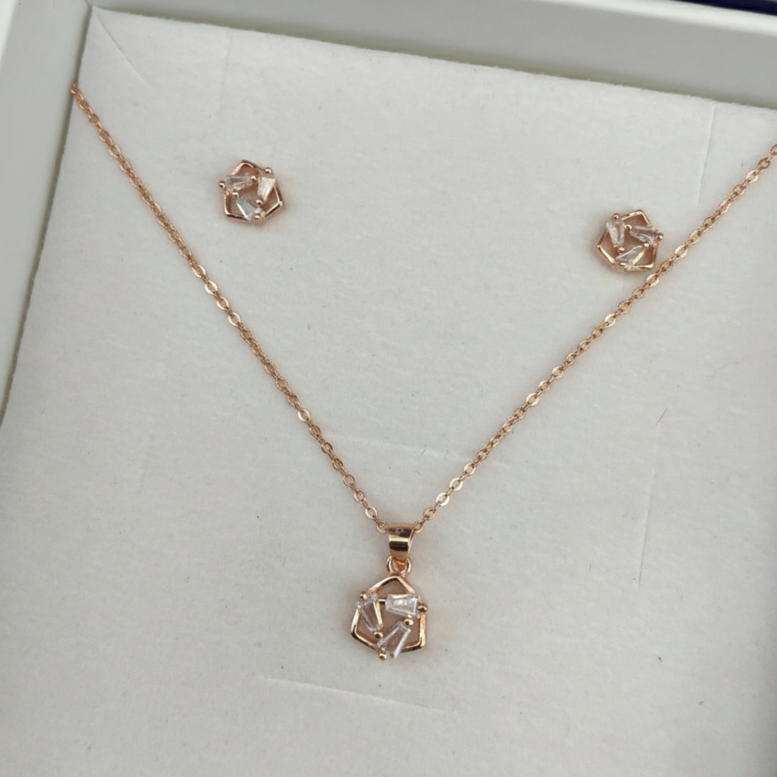 Rose Gold Hexagon Pendant Set with chain- 925 Sterling Silver